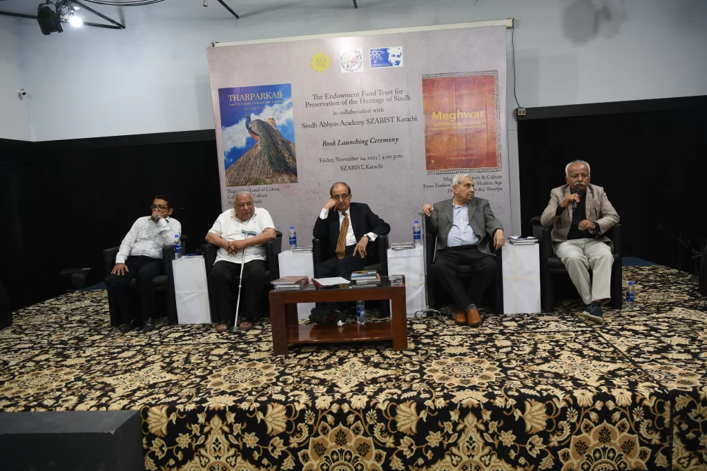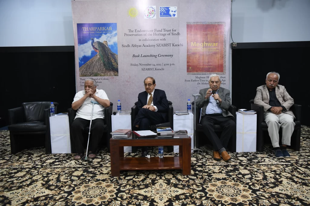 The Endowment Fund Trust (EFT), in collaboration with SZABIST Karachi, hosted the book launch ceremony of Tharparkar: Land of Colour, Contrast and Culture by Noor Ahmed Janjhi and Meghwar: History & Culture – From Earliest Time to the Modern Age by Dr. MohanDev Raj Thontiya on Friday, November 24, 2023, the event was presided over by Mr. Jahangir Siddiqui, Chairman of EFT, with distinguished speakers including Mr. Arif Hassan and Dr. Suleman Shaikh, along with the authors.