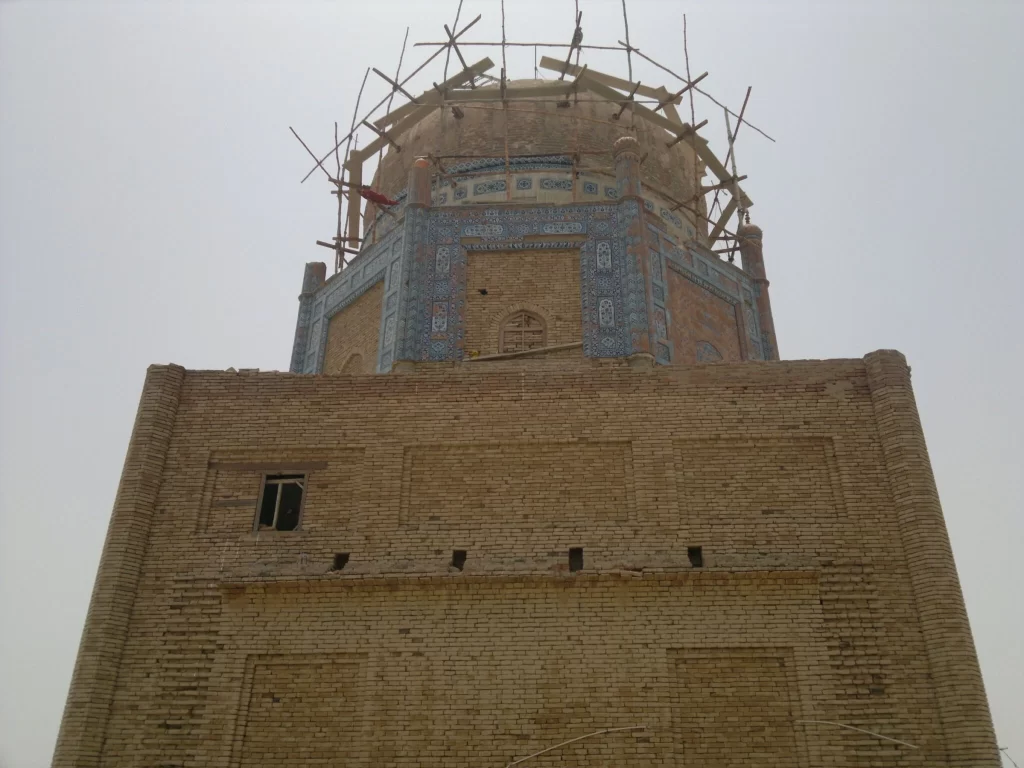 The work began in May 2016, with the fabrication and fixing of kashi tile panels on the exterior of the octagonal drum of the tomb. The dome and finial were also restored, and all missing architectural features were conserved. However, the rising damp and the damage to the brickwork needs to be addressed.